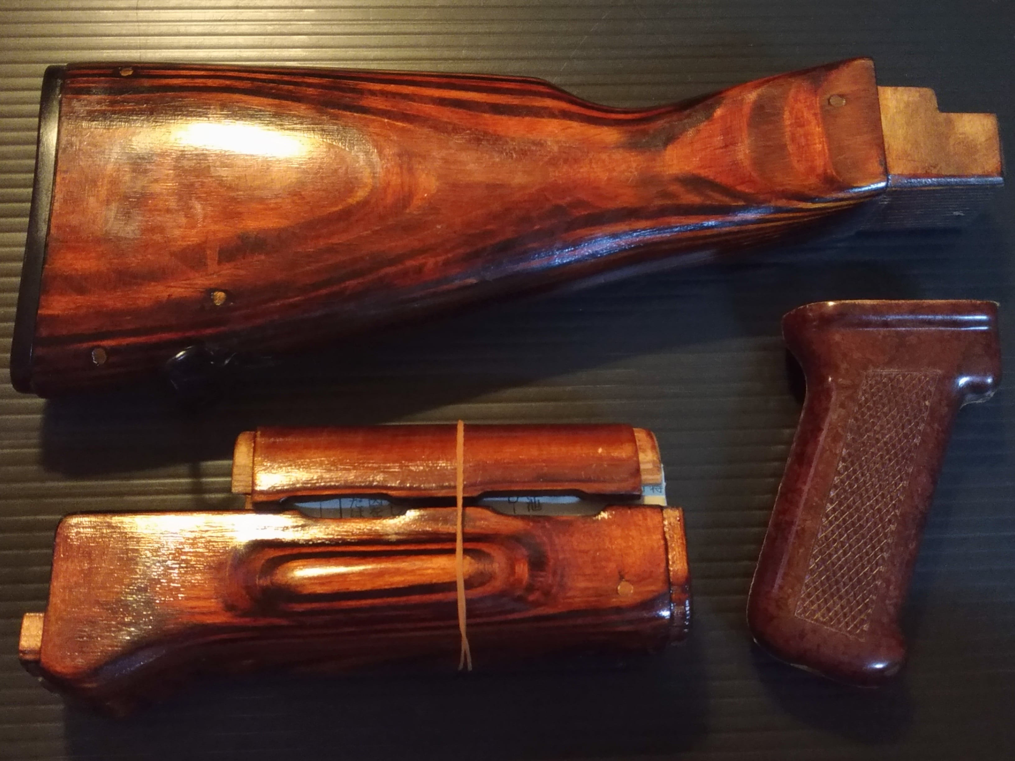 ◆商品:ロシア製 ツーラ造兵廠 AKM用ウッドストック・ ウッドハンドガード・ベークライトグリップ全て実物のセットです。